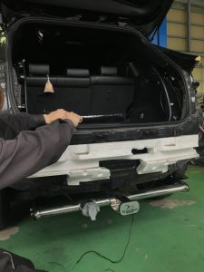 ハイブリッドのハリアーにヒッチメンバー取付中です🔧